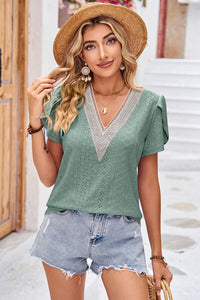 Eyelet V-Neck Petal Sleeve T-Shirt
