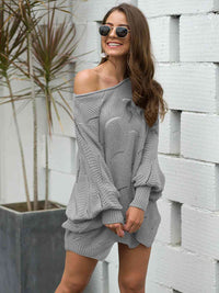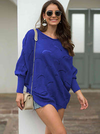Full Size Boat Neck Lantern Sleeve Openwork Knit Top