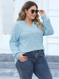 Plus Size Ribbed V-Neck Long Sleeve Top
