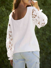 Ribbed Lace Trim Flounce Sleeve Knit Top