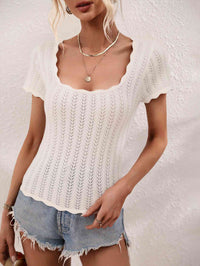 Scalloped Hem Square Neck Knit Top