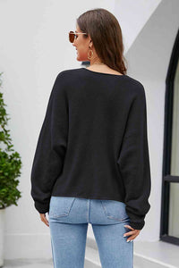 V-Neck Drop Shoulder Long Sleeve Knit Top