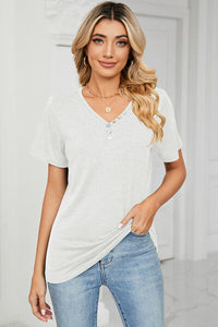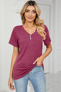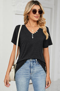 This V-Neck Short Sleeve T-Shirt is made for comfort and style. The classic v-neck design and short sleeves make it the perfect addition to any wardrobe. Made from high-quality materials, it offers both durability and breathability, ensuring all-day comfort. Perfect for both casual and dressy occasions.