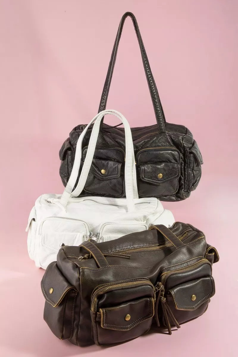 Fame Multi Pocket Textured Leather Shoulder Bag