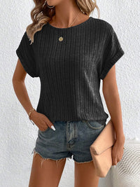 Plus Size Ribbed Texture Short Sleeve T-Shirt