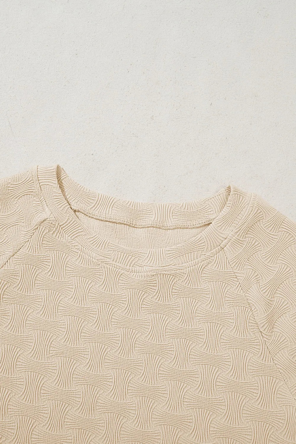 Textured Crew Neck Cap Sleeve Slim T Shirt