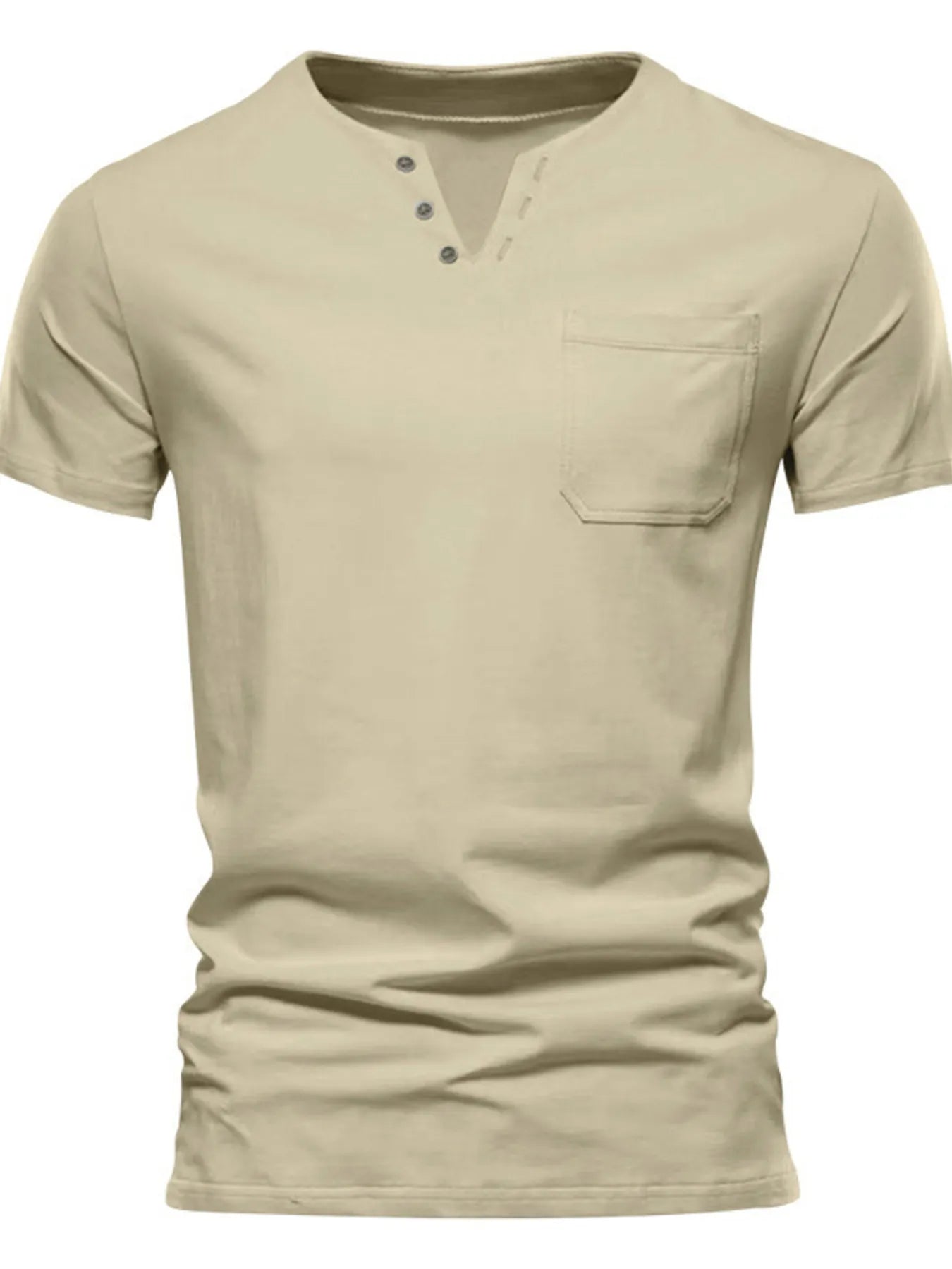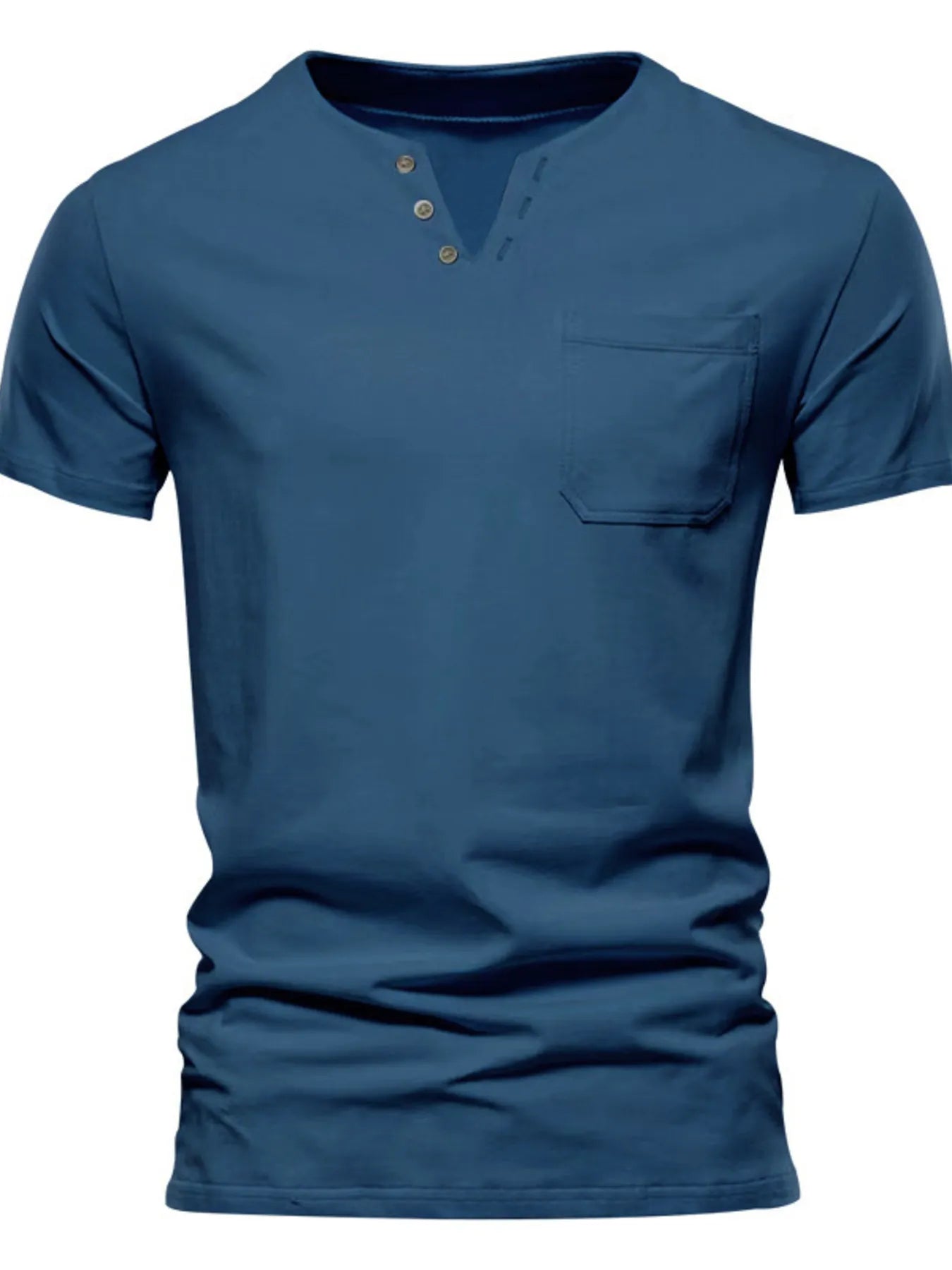 Men's Full Size Notched Henley T-Shirt with Chest Pocket Plus Size