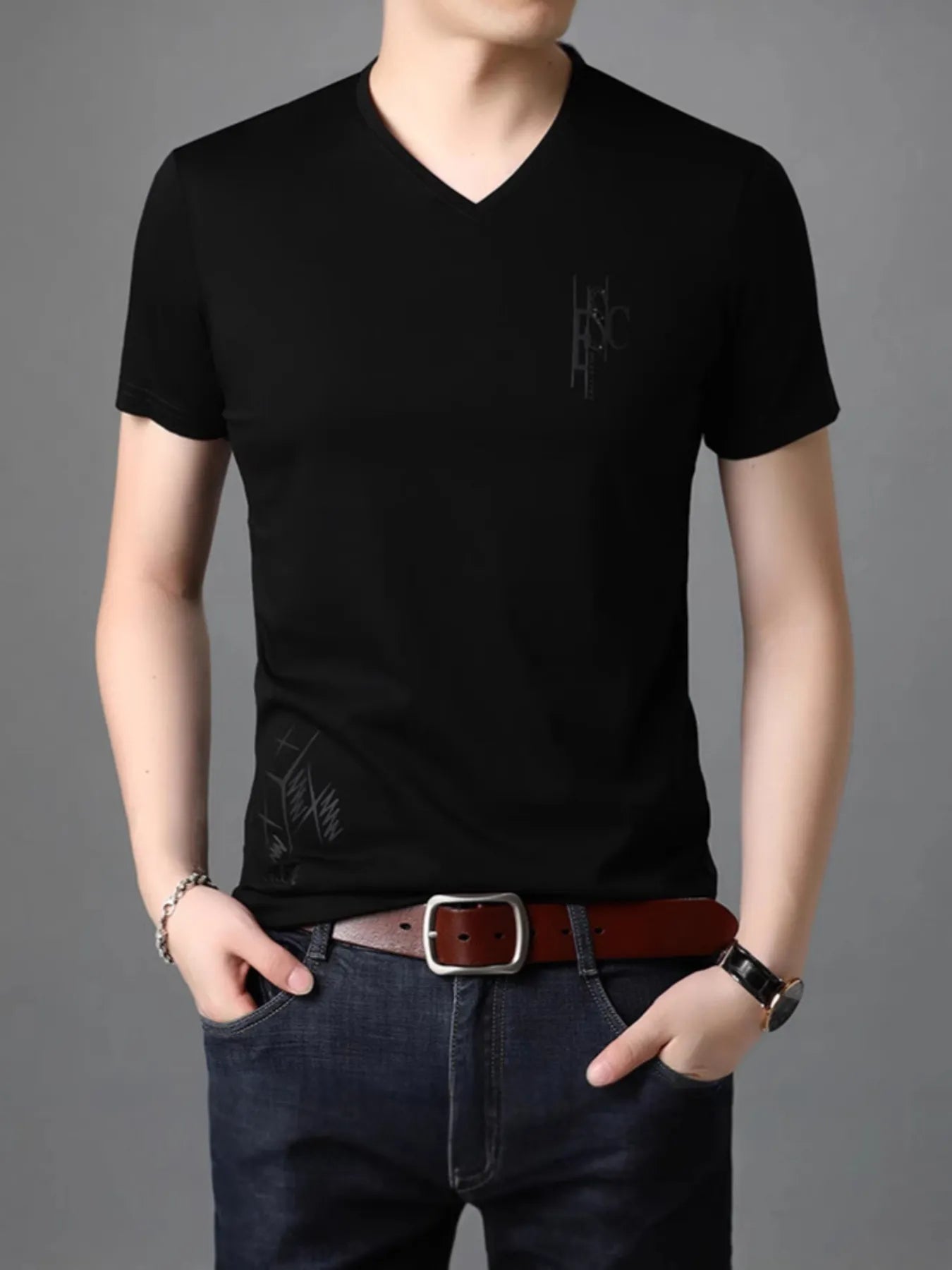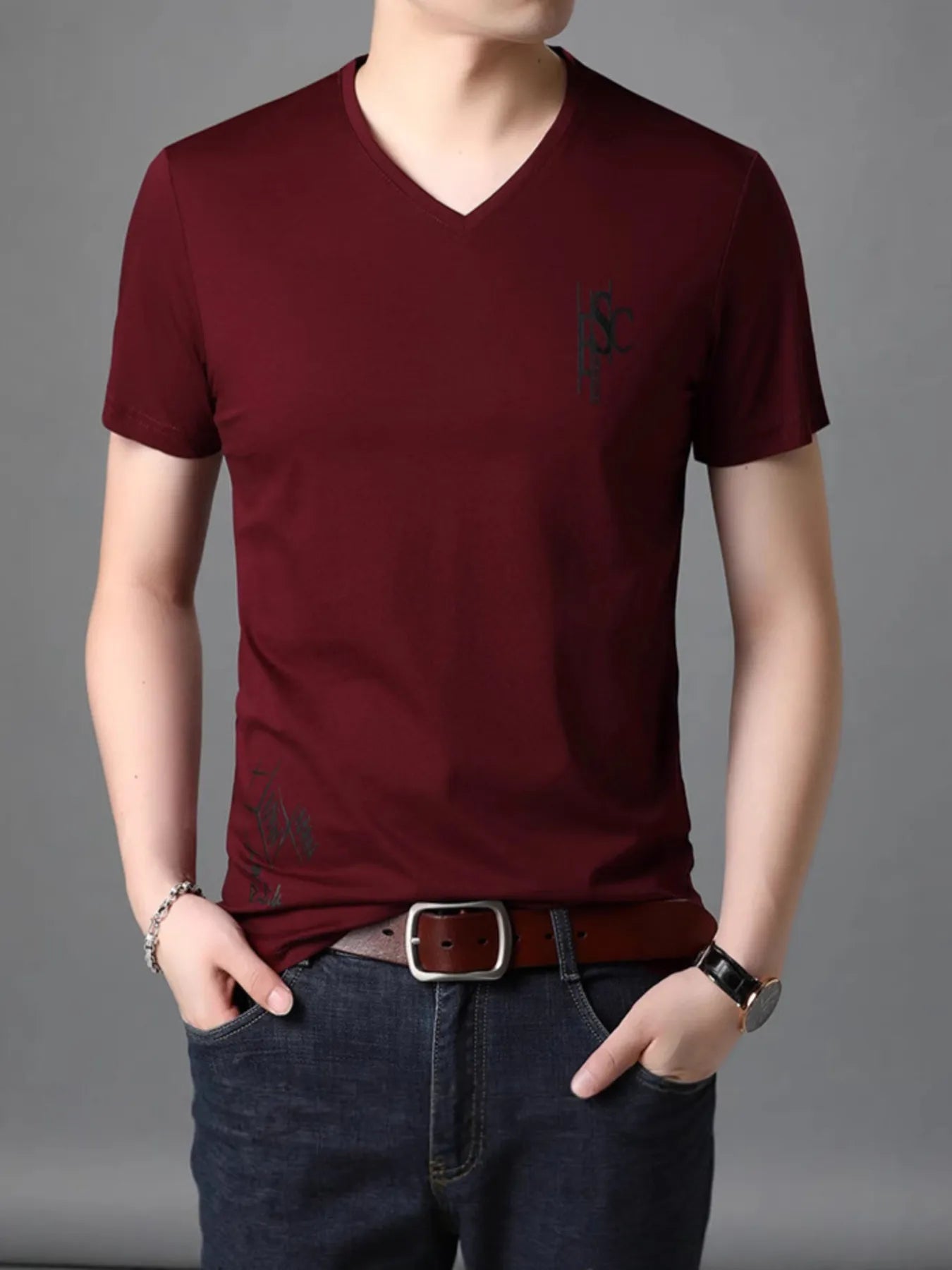 Men's Full Size V-Neck Short Sleeve T-Shirt Plus Size