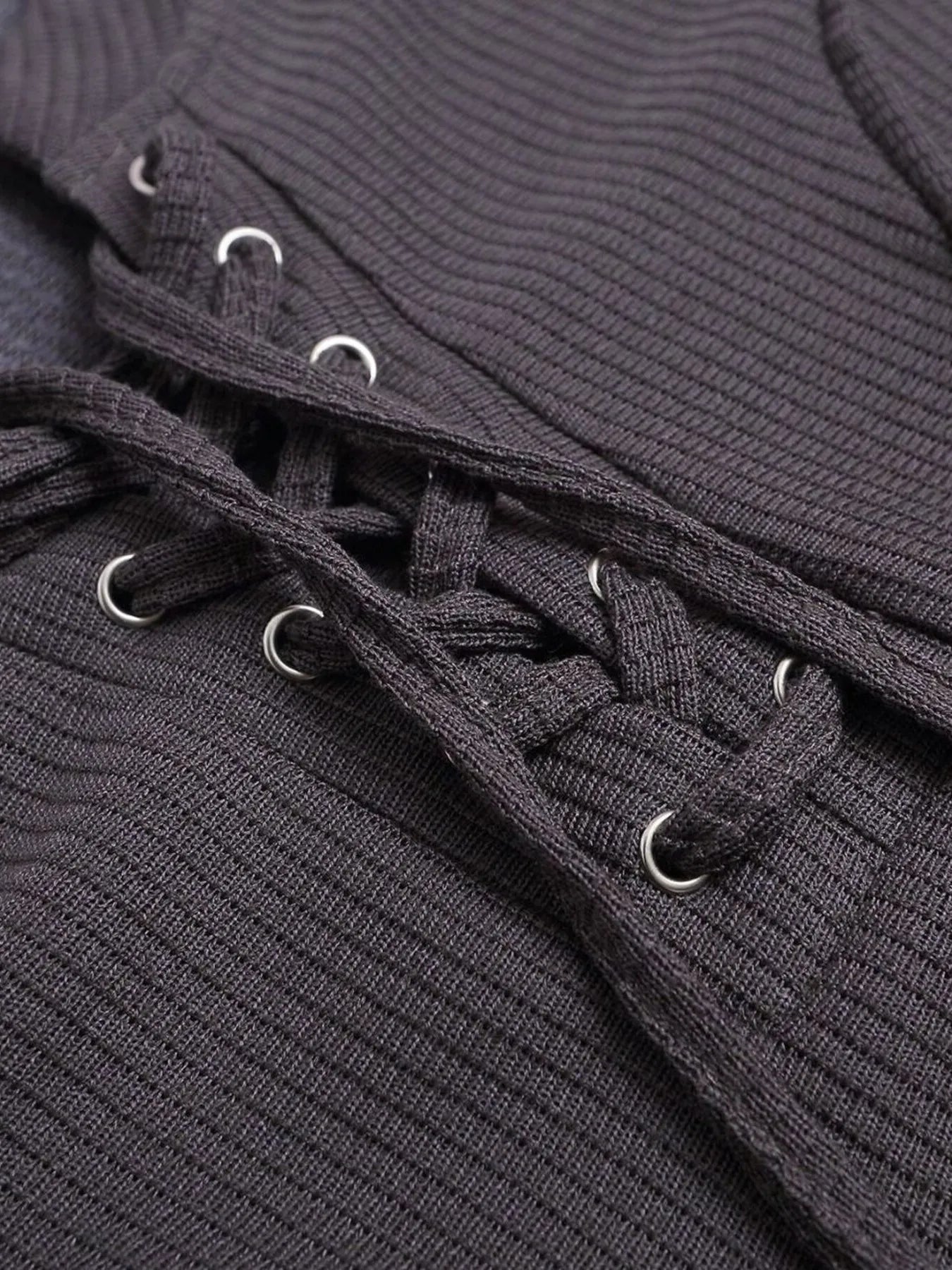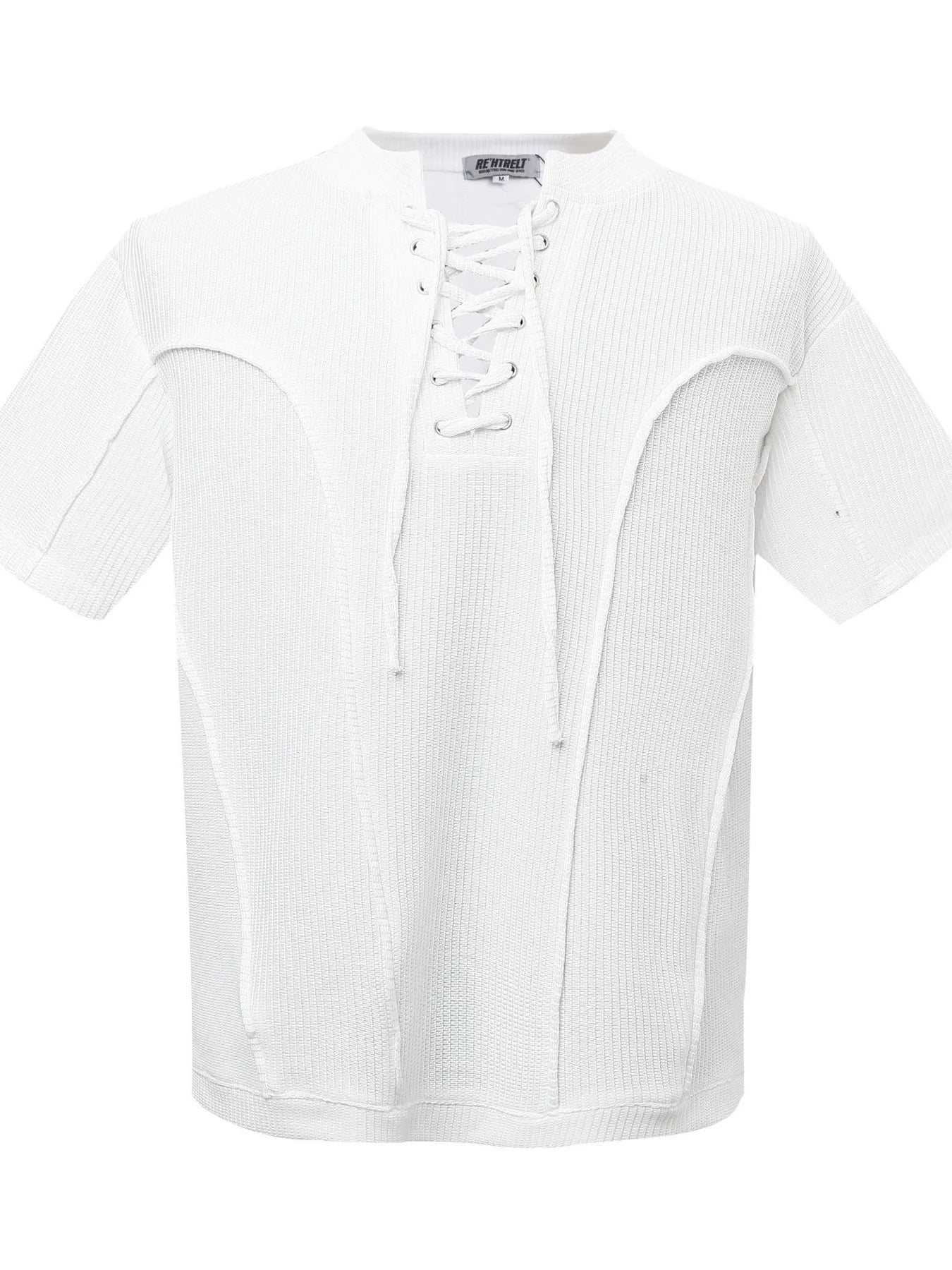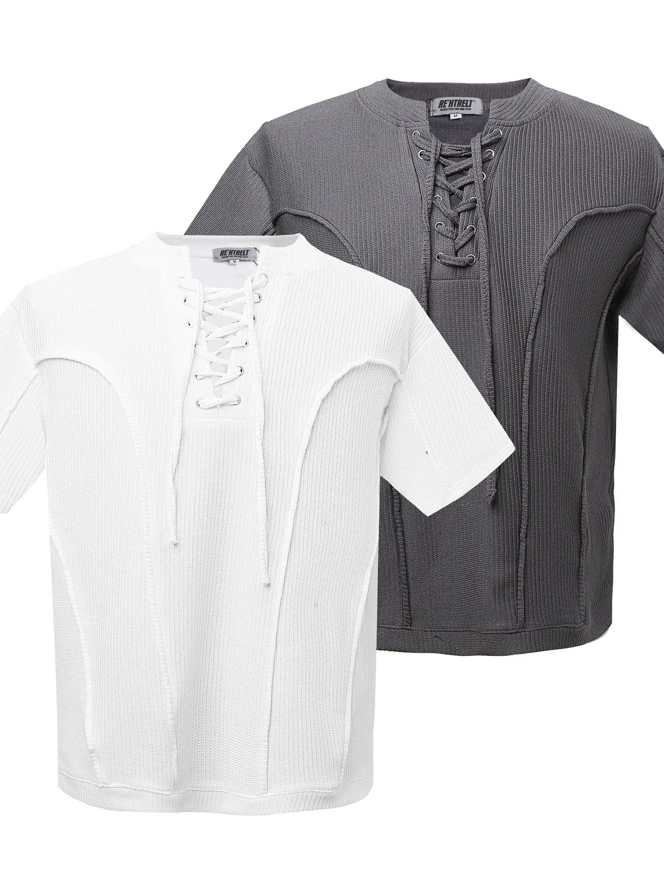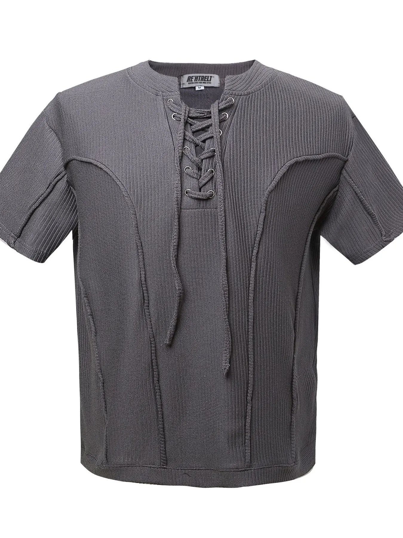 Men's Ribbed Lace-Up Short Sleeve T-Shirt