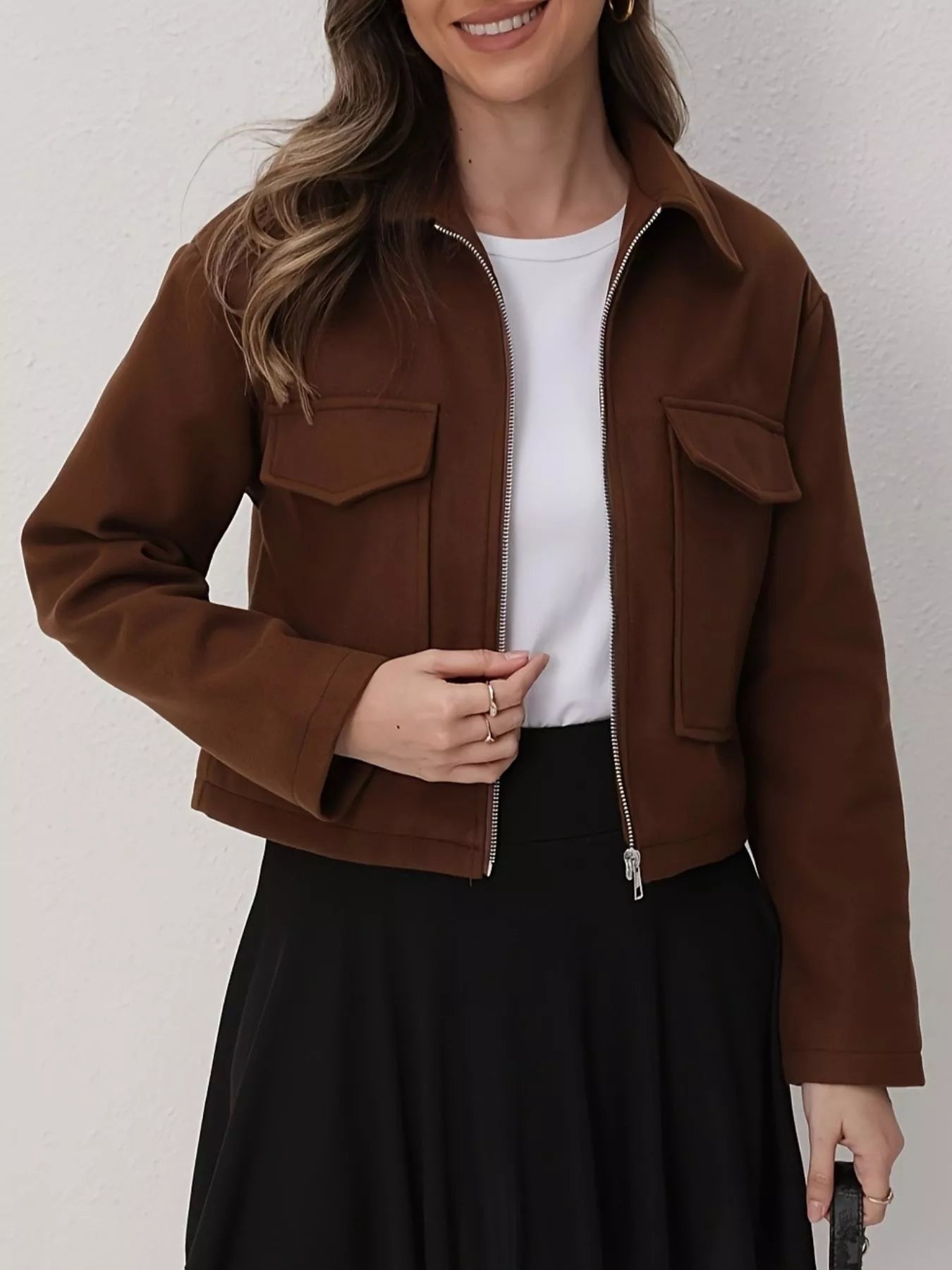 I was very impressed with the fabric of this jacket and the color is just like the pictures… It’s a very beautiful coat and it’s very well-made. I was impressed with the thickness… It feels just like the thickness of a real wool coat.