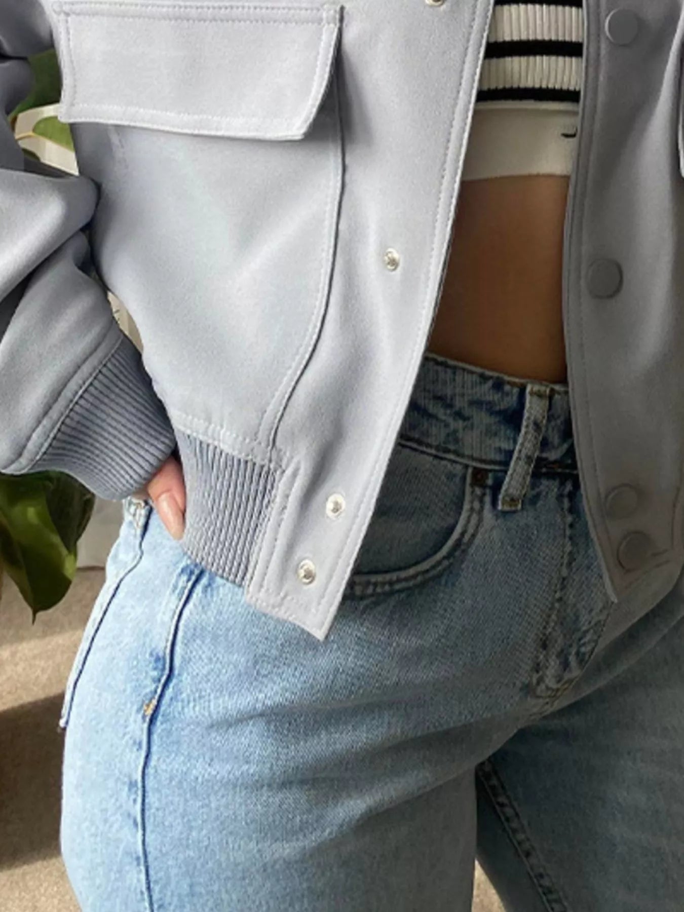 Full Size Snap Down Long Sleeve Jacket Plus Size