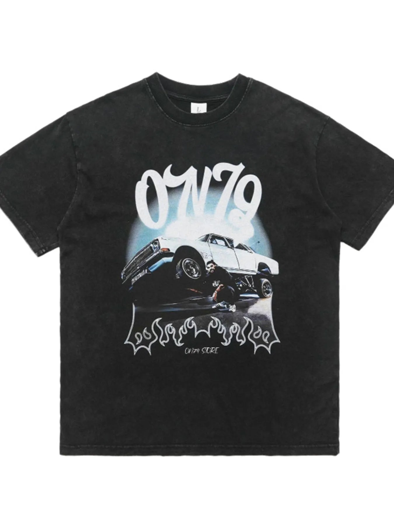 Men's Car Graphic Round Neck Oversized T-Shirt