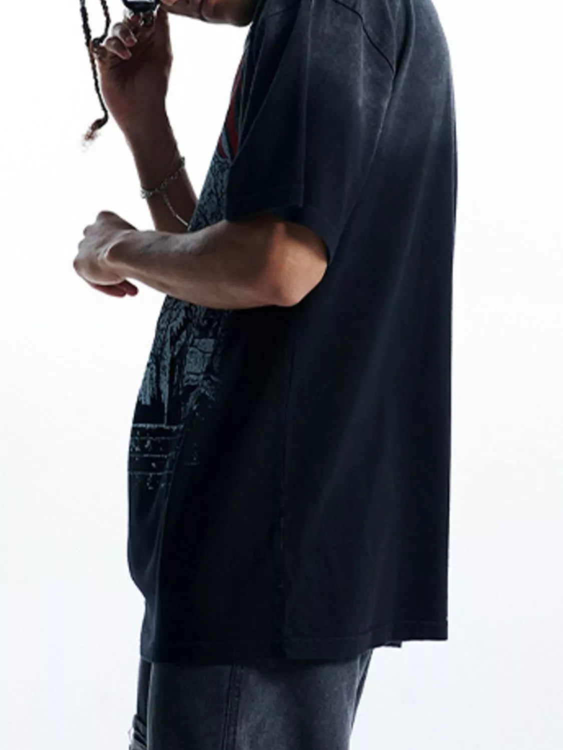 Men's Halloween Washed Round Neck Graphic T-Shirt