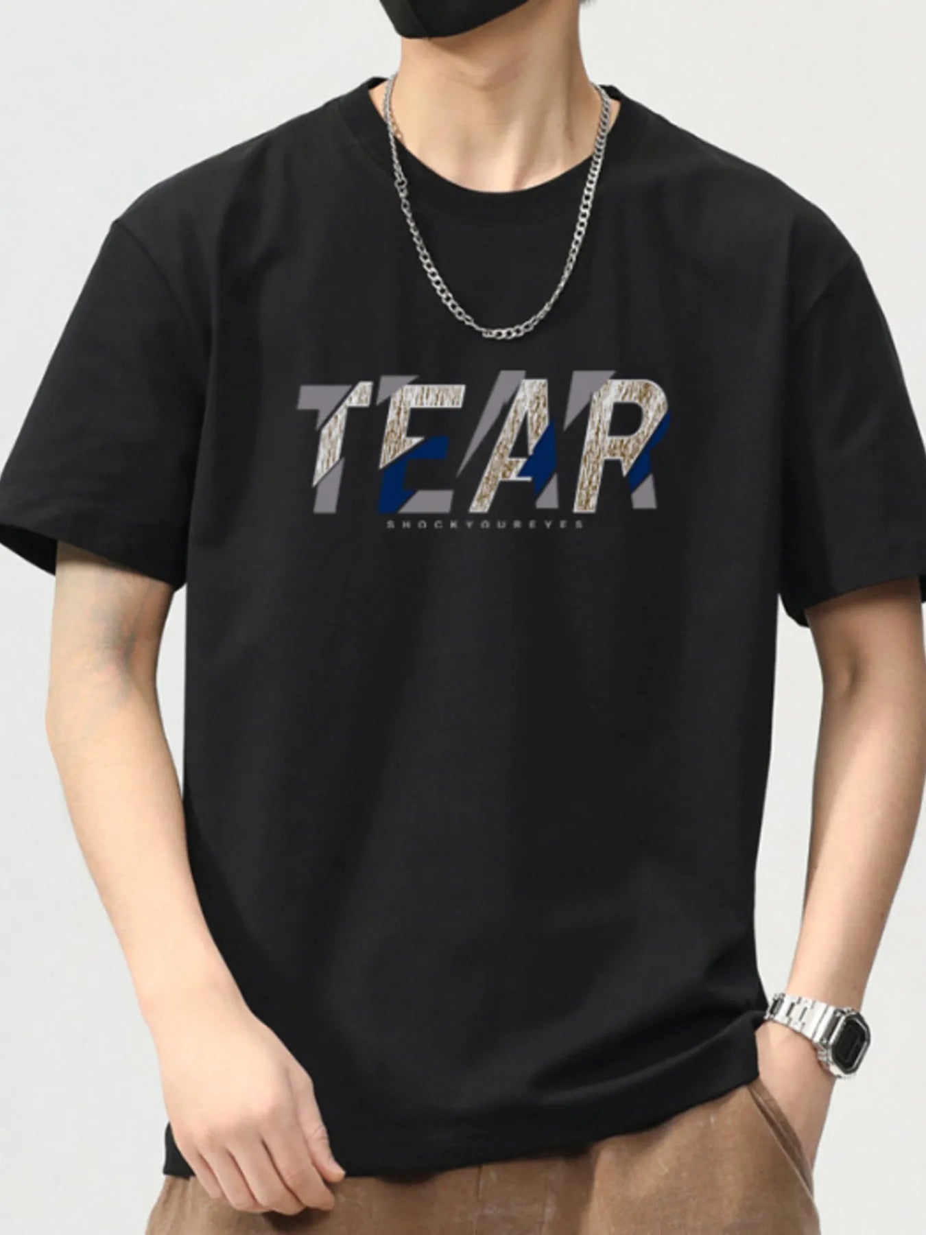 Men's Plus Size Letter Round Neck Short Sleeve T-Shirt