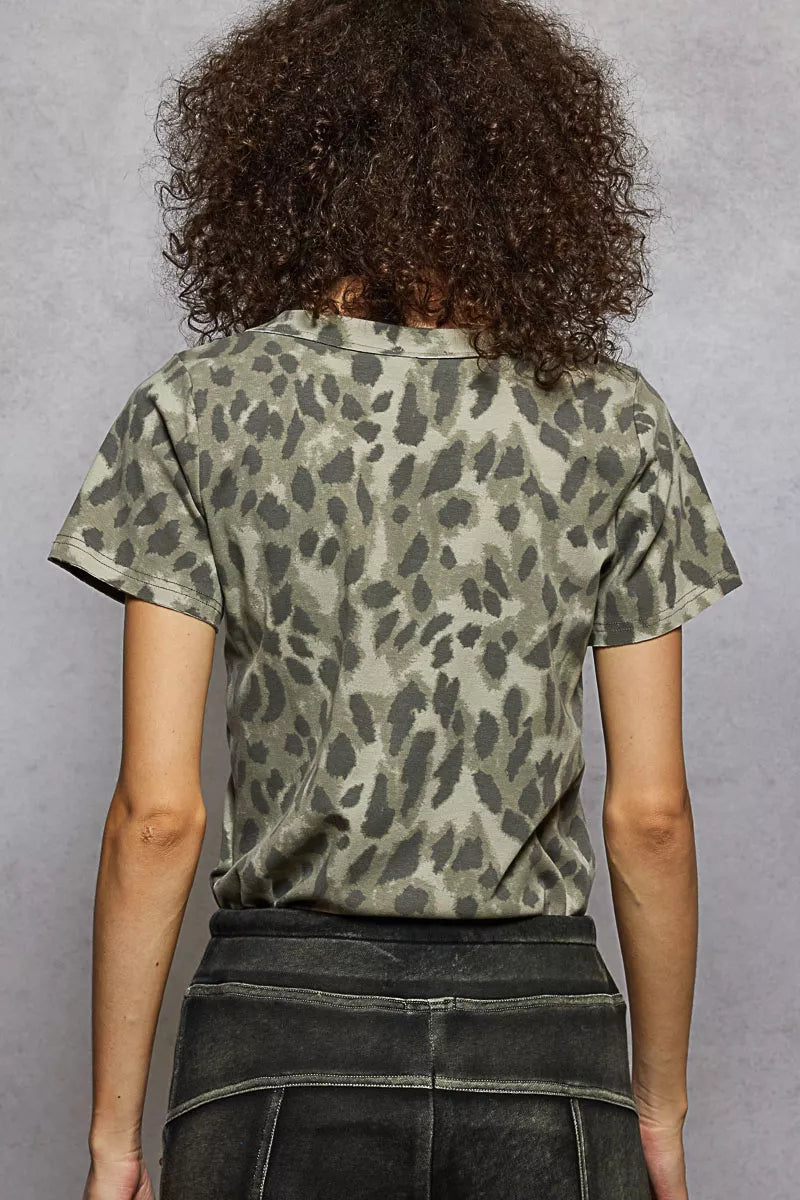 This printed V-neck short sleeve t-shirt is a versatile and stylish addition to your casual wardrobe. The V-neckline adds a flattering touch to the design. With a variety of prints to choose from, you can showcase your personal style with this t-shirt. The short sleeves make it perfect for layering or wearing on its own in warmer weather. Stay comfortable and on-trend with this chic printed V-neck t-shirt.