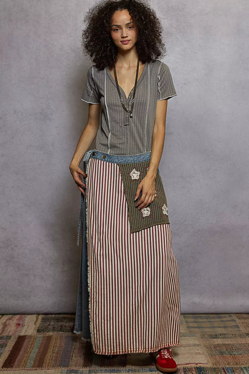 POL V-Neck Short Sleeve Top with Stitch Seam Detail