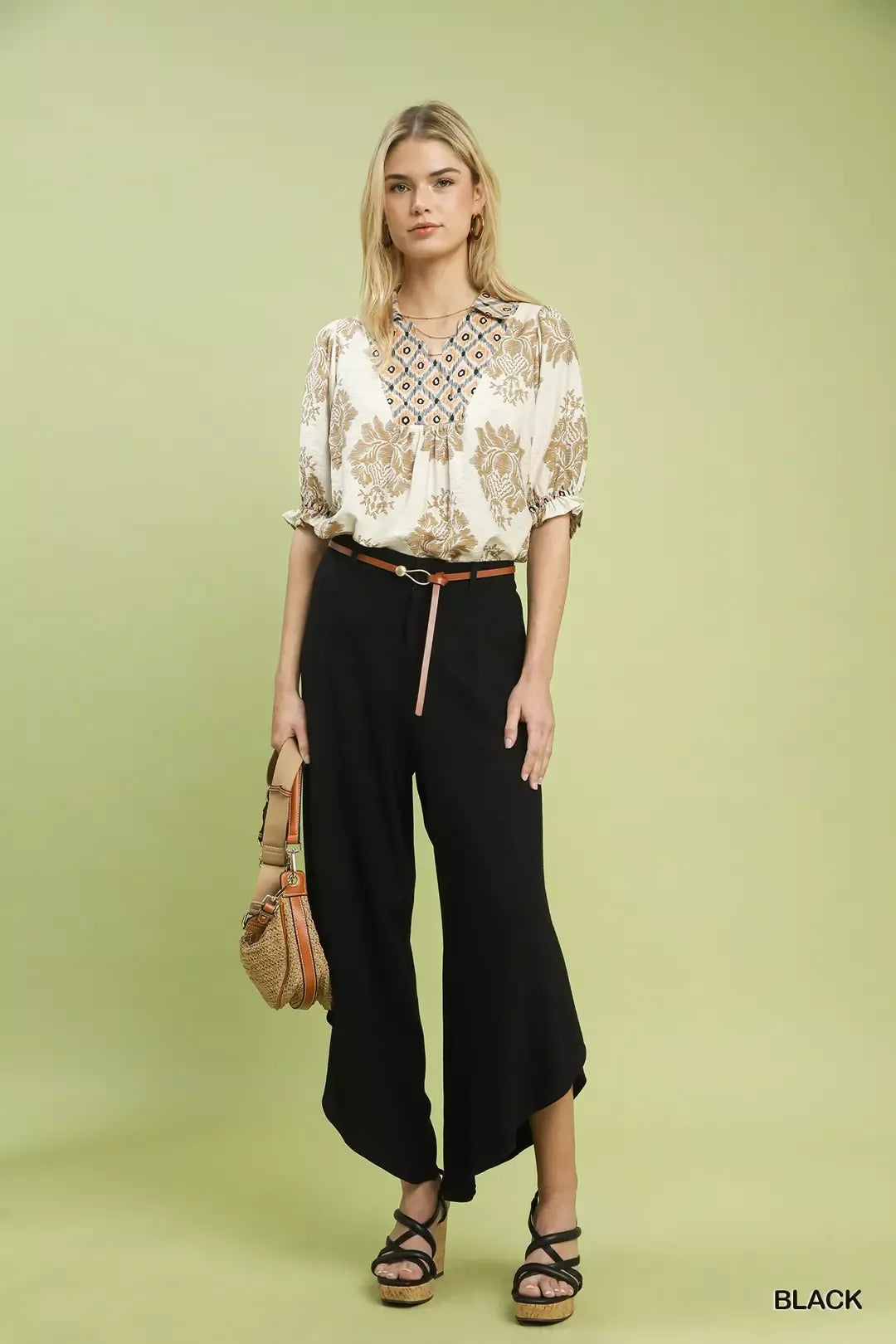 Umgee Flowy Asymmetrical Hem Wide Leg Pants