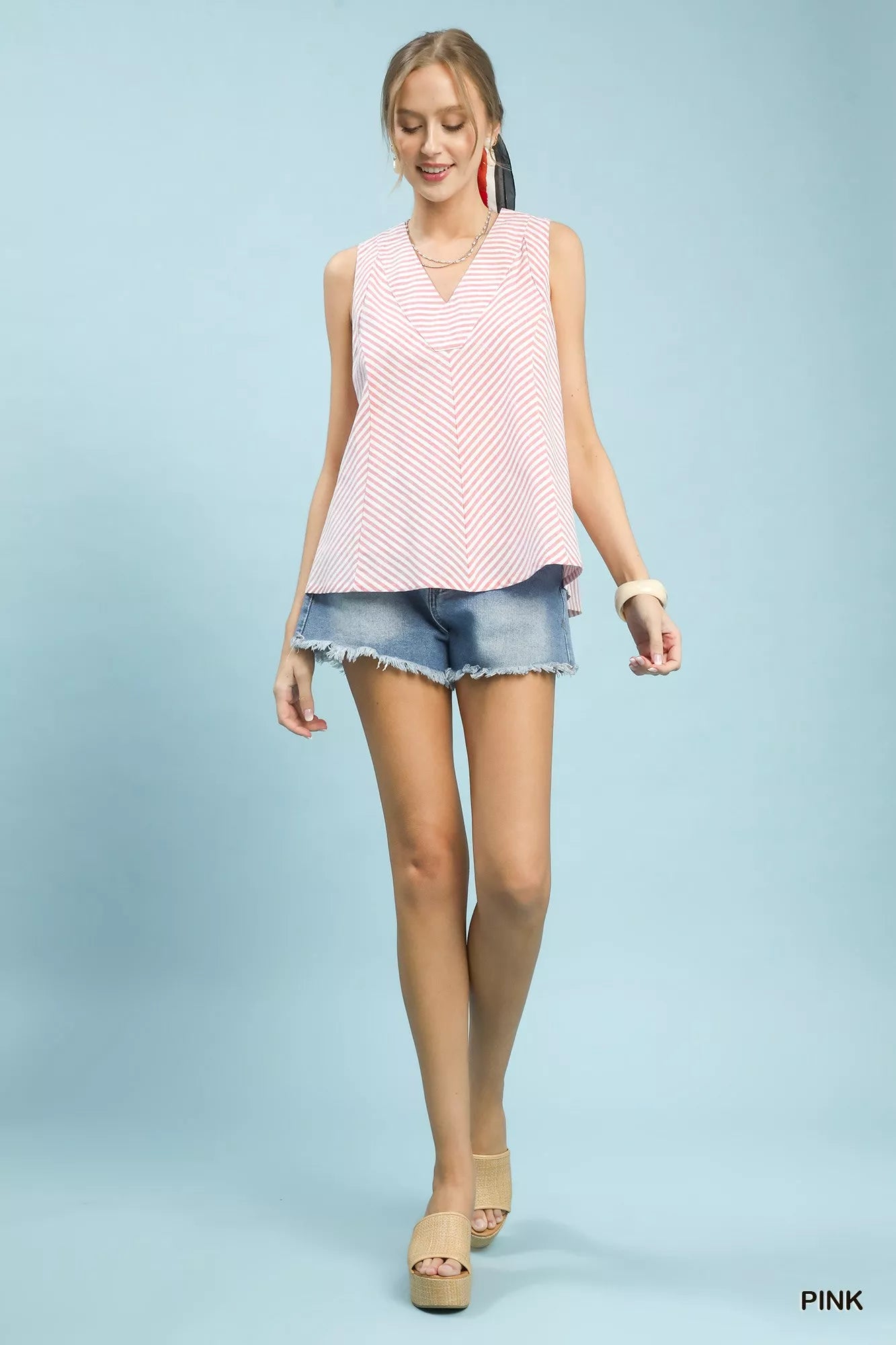 Umgee Mixed Stripe Sleeveless V-Neck Top