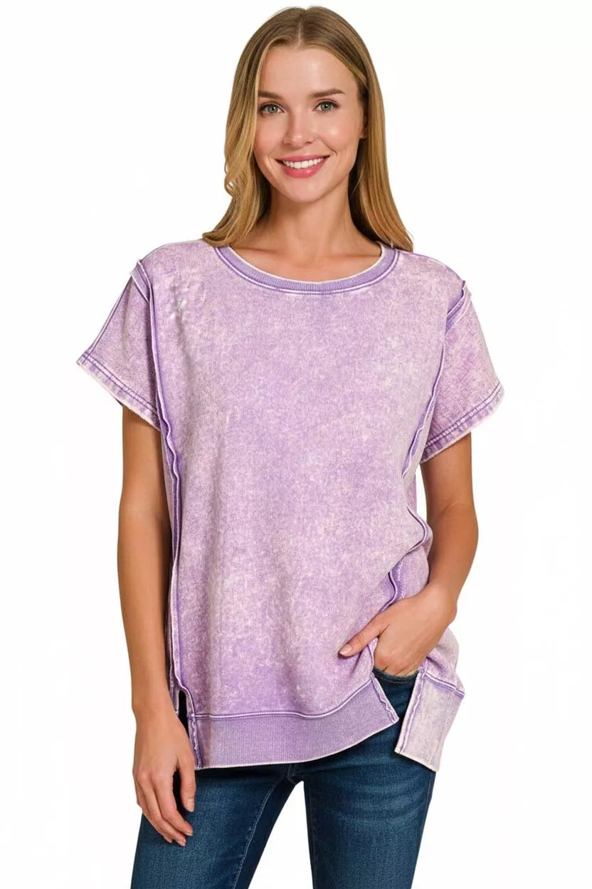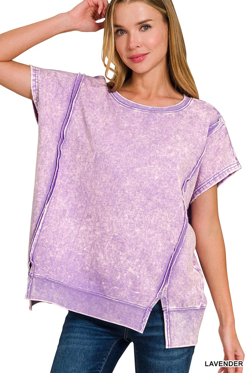Zenana French Terry Acid Washed Hi-low Top