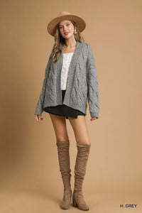 Umgee Chunky Cable Knit Open Front Cardigan
