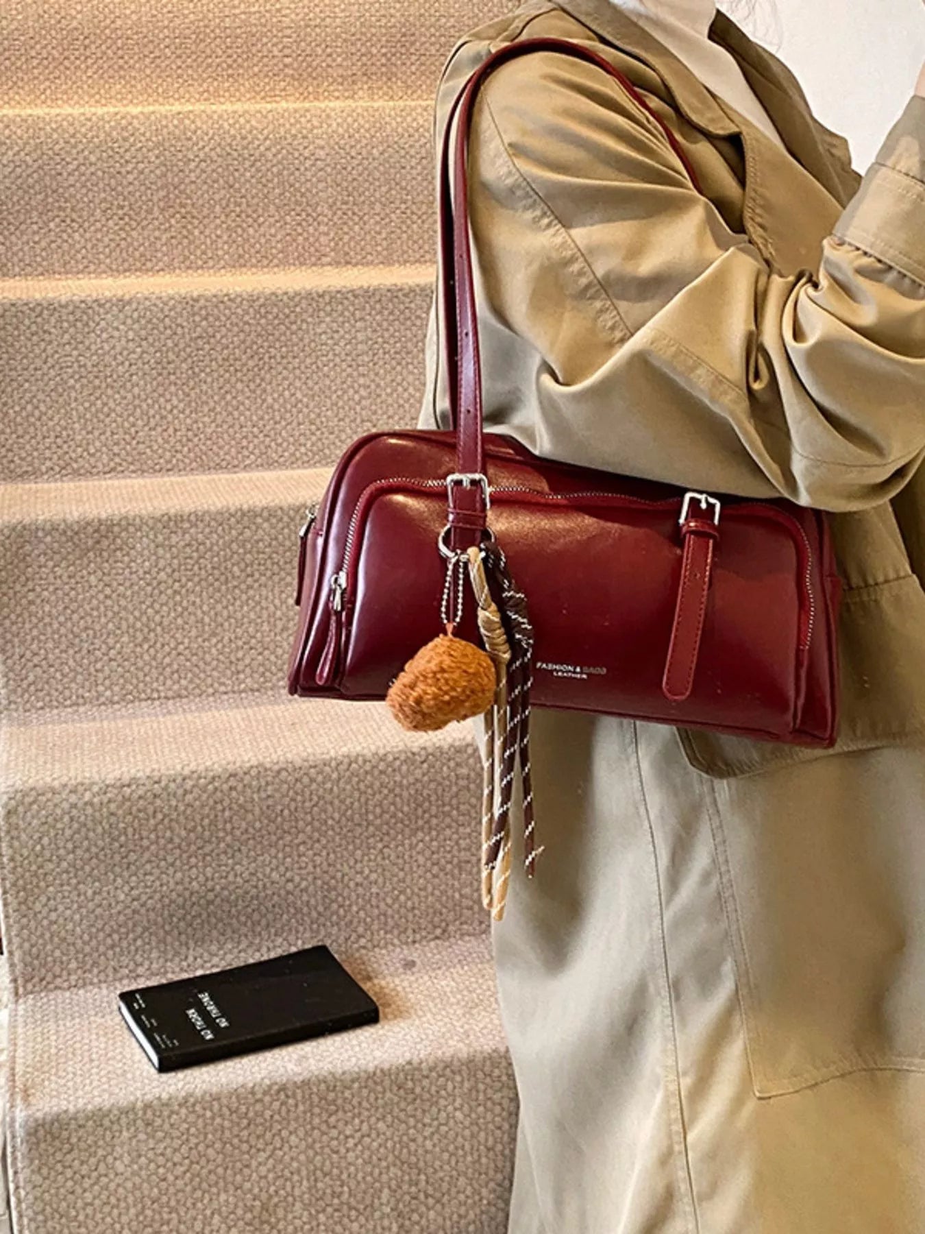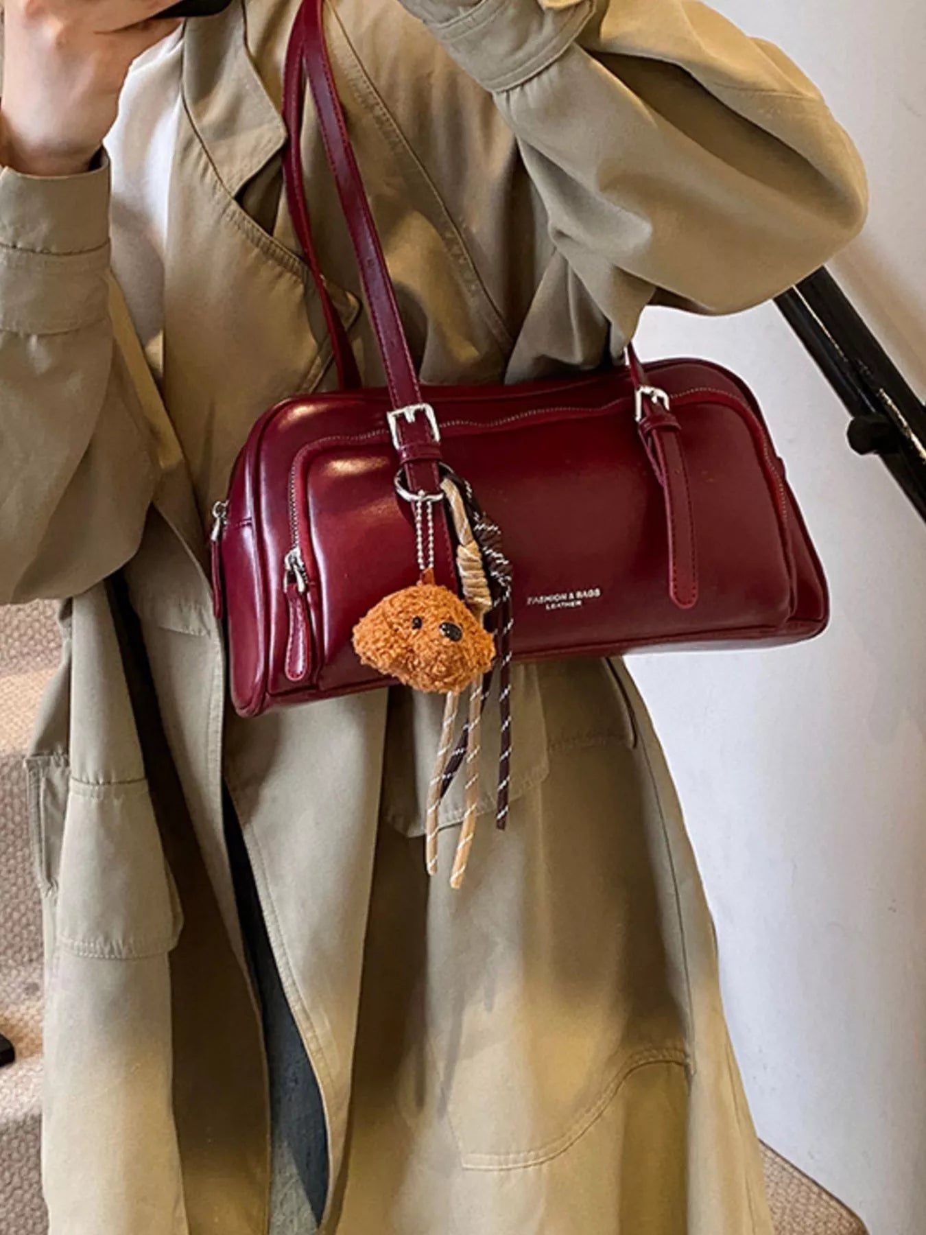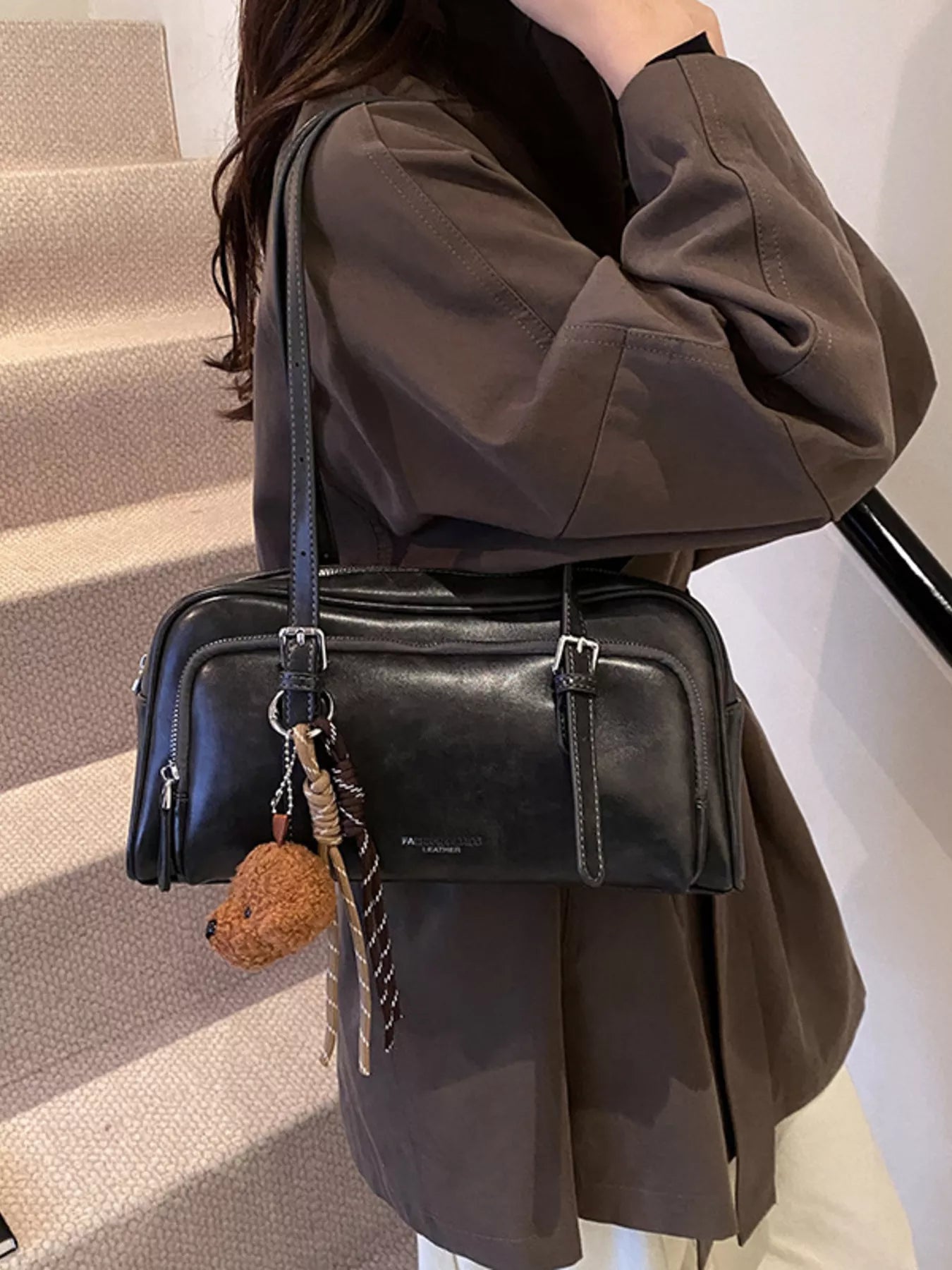 Vintage Style Leather Shoulder Bag with Charm