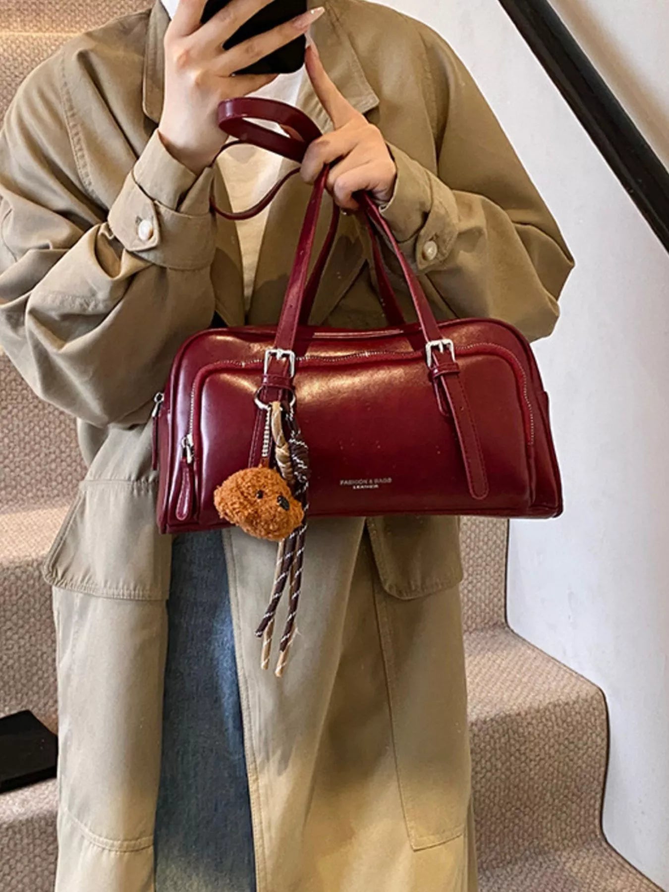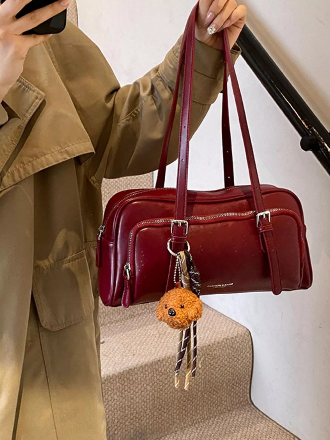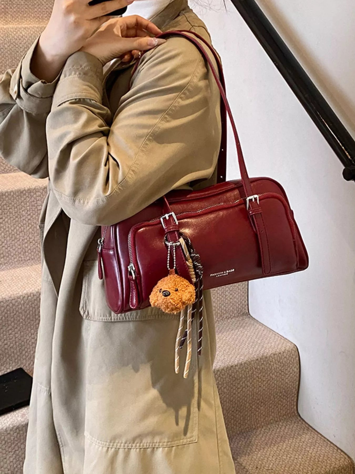 Vintage Style Leather Shoulder Bag with Charm