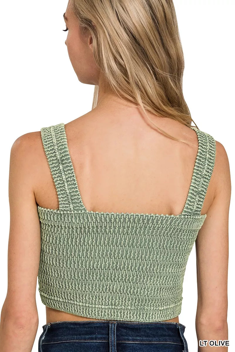 Zenana Seamless Winkle Stone Washed Bra Top