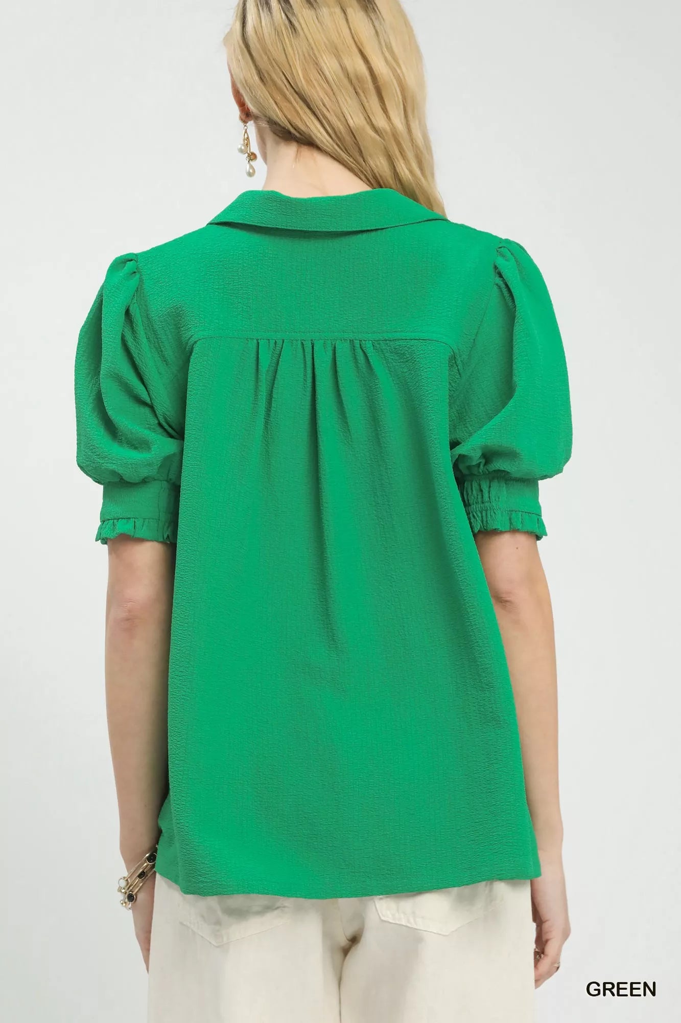 Umgee Seersucker Puff Sleeve Blouse