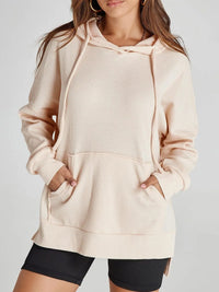 Slit Drawstring Waffle Knit Hoodie