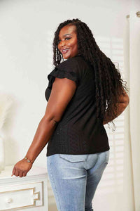Elevate your style with this stunning Eyelet Tie-Neck Flutter Sleeve Blouse. The intricate eyelet design and flutter sleeves give a feminine and whimsical touch, while the tie-neck adds a touch of elegance and sophistication.
