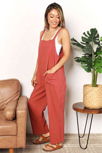 These wide-leg overalls feature a solid color and are designed with front pockets, adding a functional and stylish element to the garment. The wide-leg cut offers a trendy and comfortable fit, making them a versatile choice for casual and everyday wear.