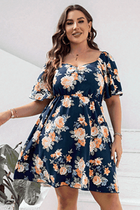 Plus Size Floral Print V-Neck Flutter Sleeve Mini Dress