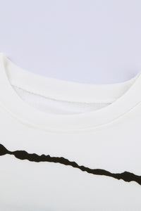 Slit Contrast Striped Round Neck Long Sleeve T-Shirt