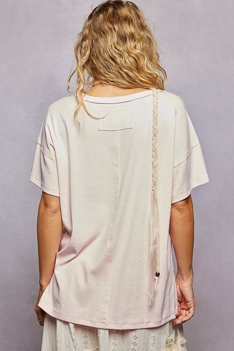 POL Round Neck Short Sleeve T-Shirt with High Low Hem