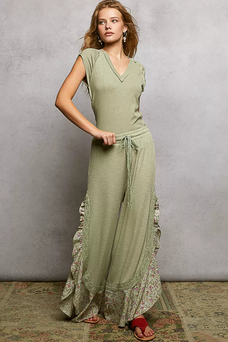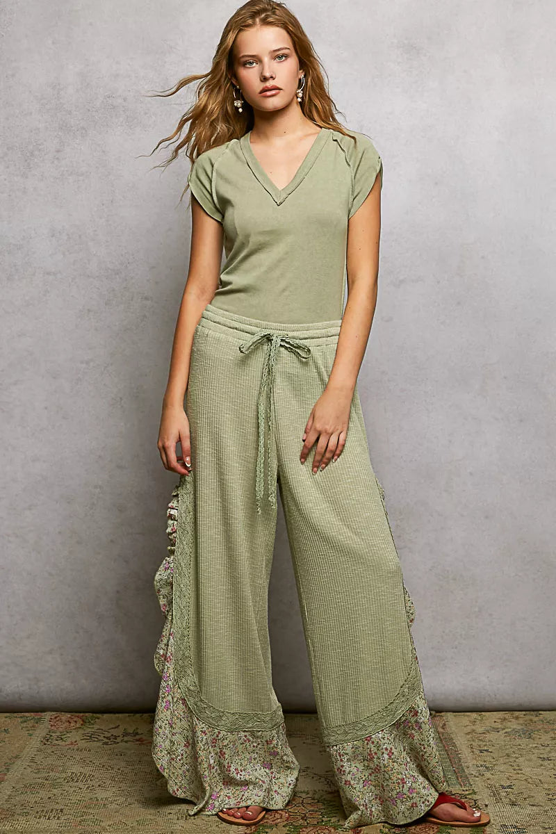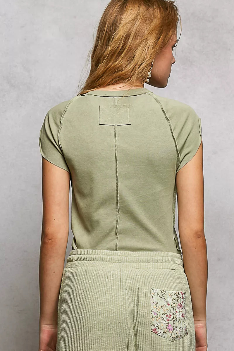 POL V-Neck Short Sleeve Washed T-Shirt with Outseam