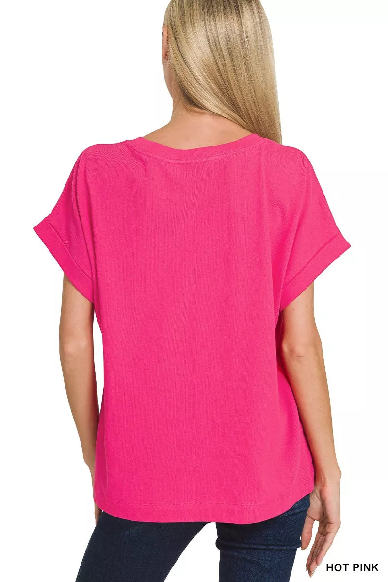 Zenana Cuffed Front Pocket Short Sleeve Tee