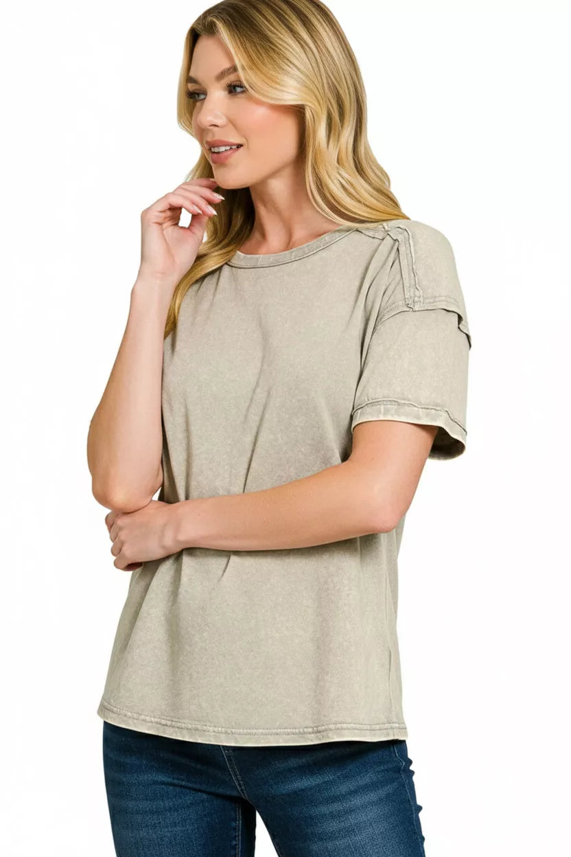 This acid washed round neck t-shirt is a trendy and edgy addition to your casual wardrobe. The acid washed finish gives it a unique and vintage-inspired look that sets it apart from ordinary t-shirts. The round neck design offers a classic and versatile style that can be easily paired with jeans, shorts, or skirts. The soft and comfortable fabric makes it perfect for everyday wear, whether you're running errands or hanging out with friends. Elevate your laid-back style with this cool and effortlessly chic acid washed t-shirt!