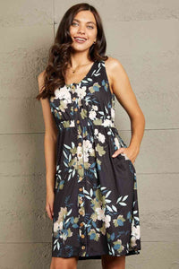 Printed Scoop Neck Sleeveless Buttoned Magic Dress with Pockets