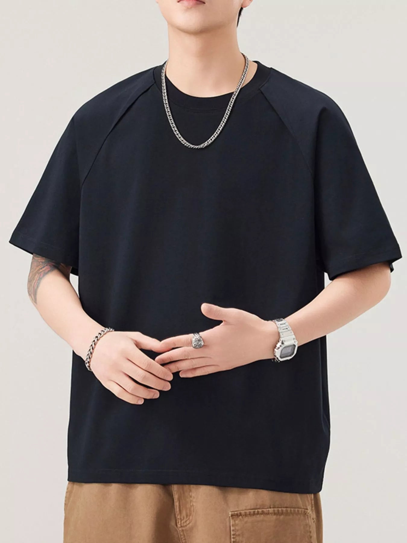 Men's Plus Size Casual Solid Color Raglan Sleeve T-Shirt