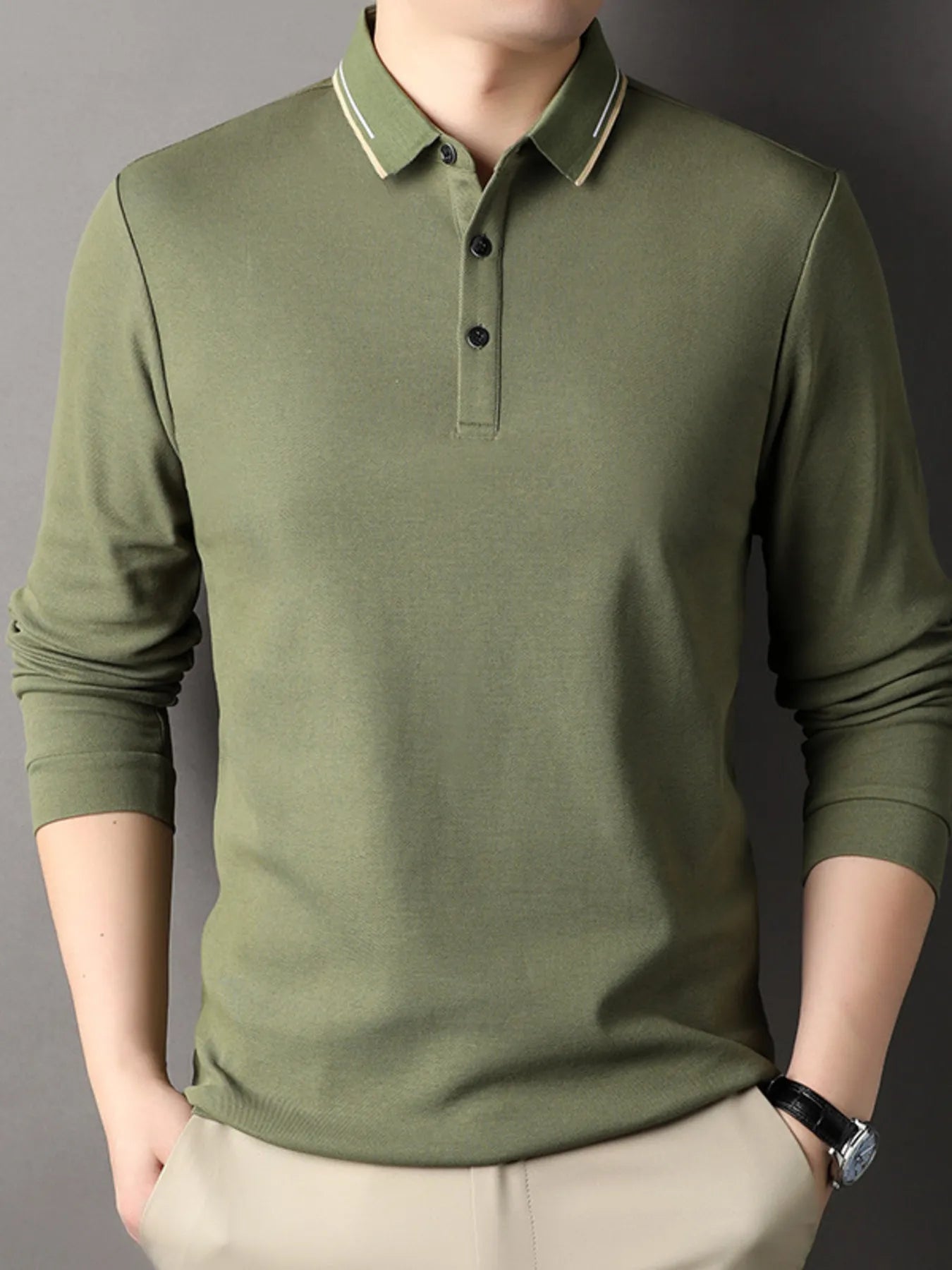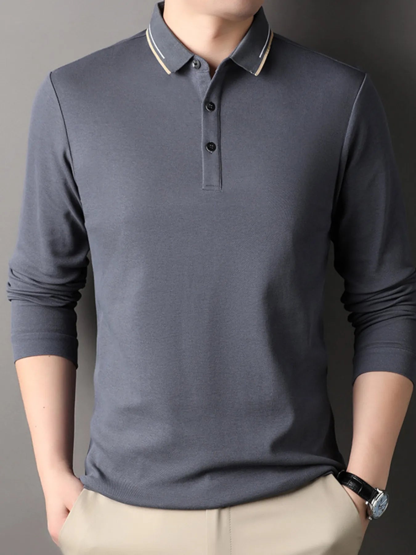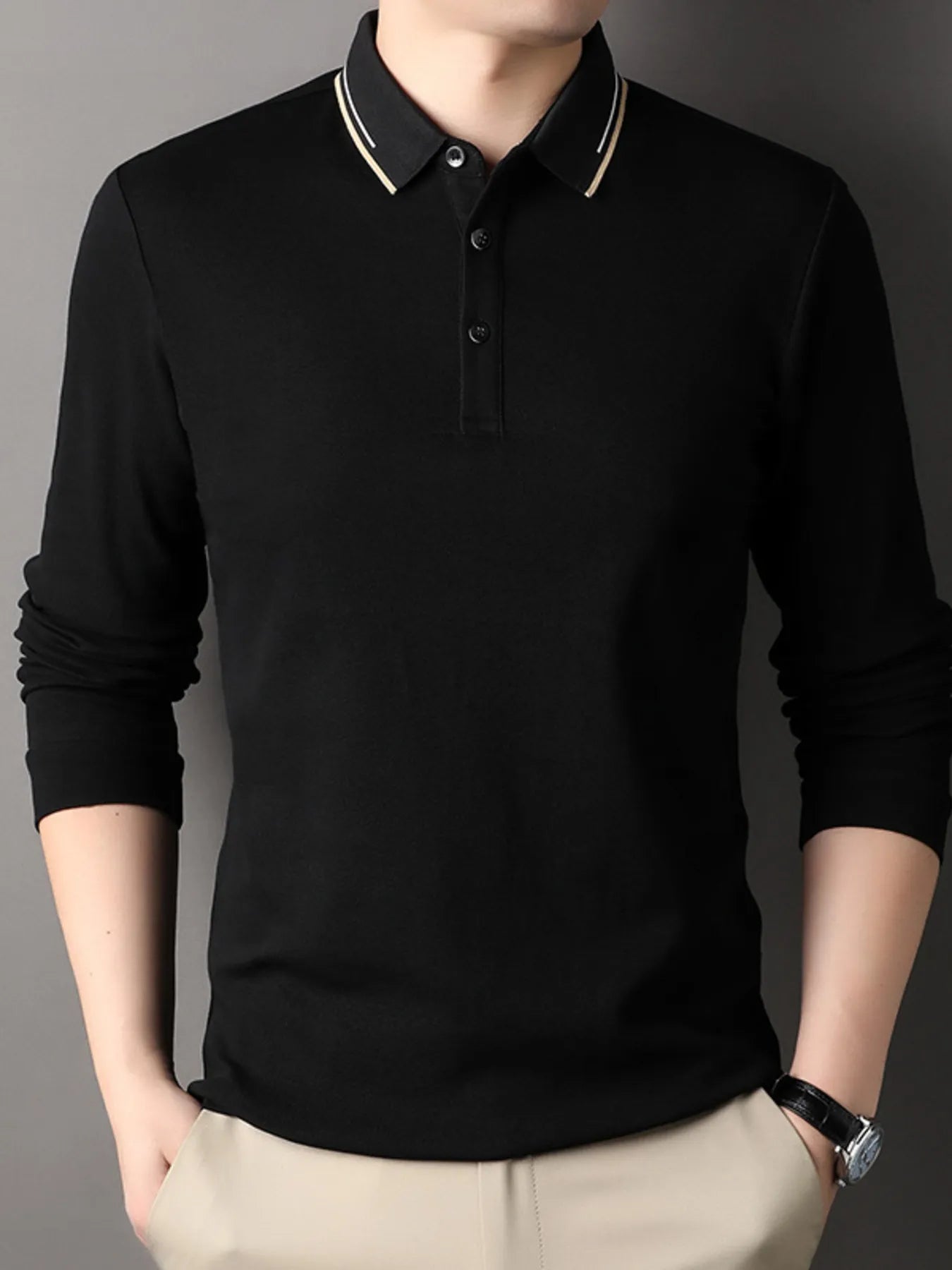 Men's Plus Size Collared Neck Long Sleeve Polo