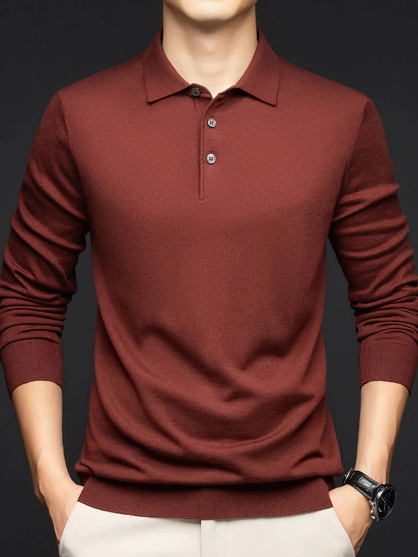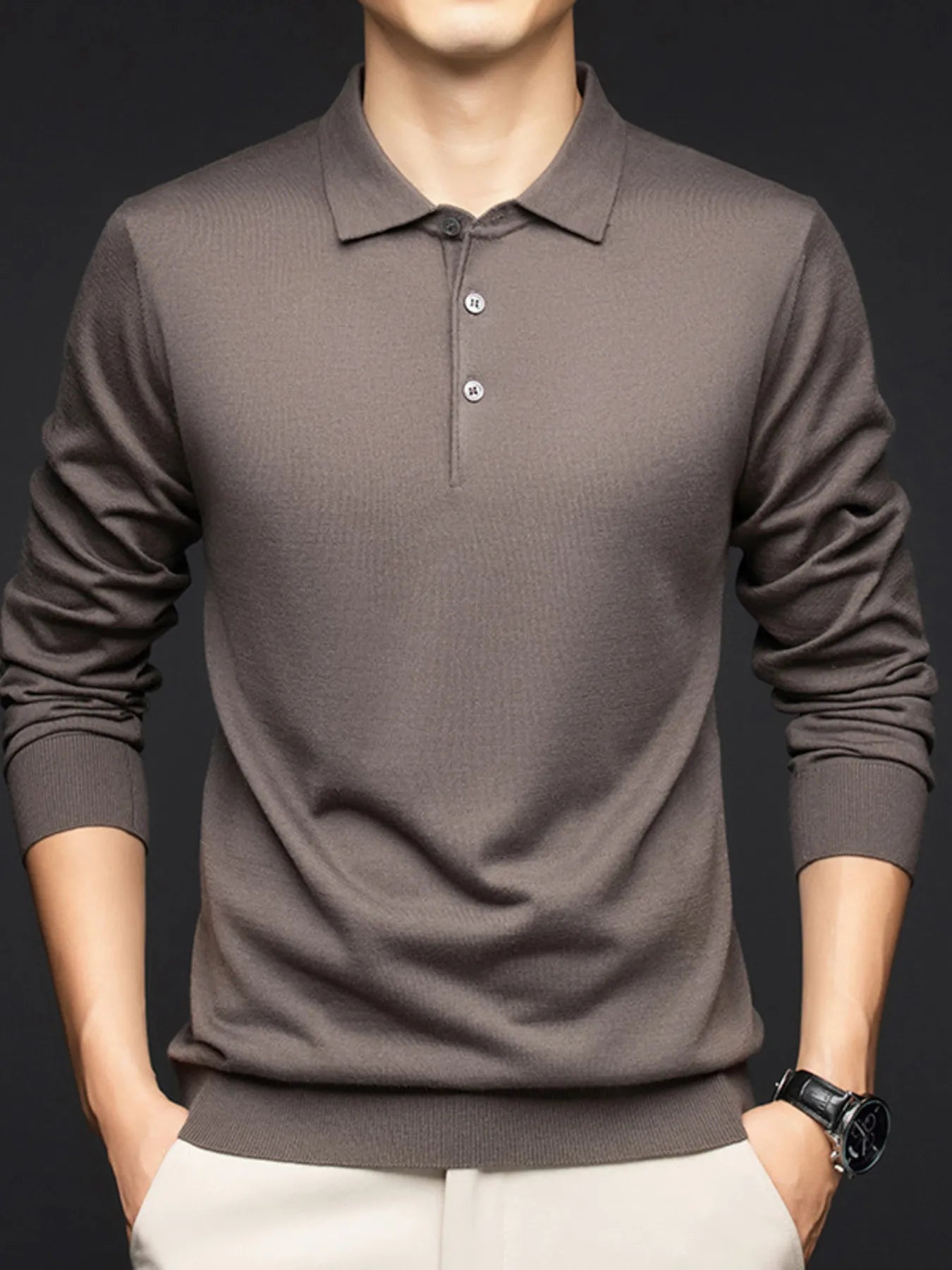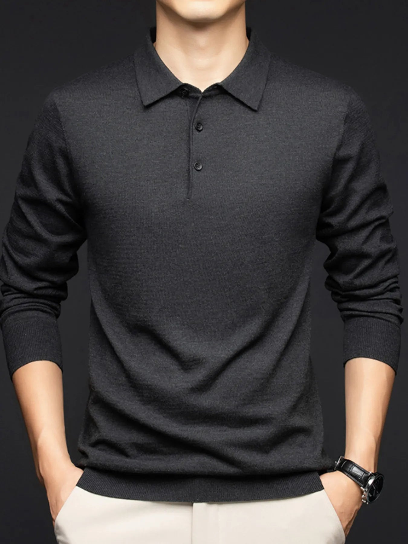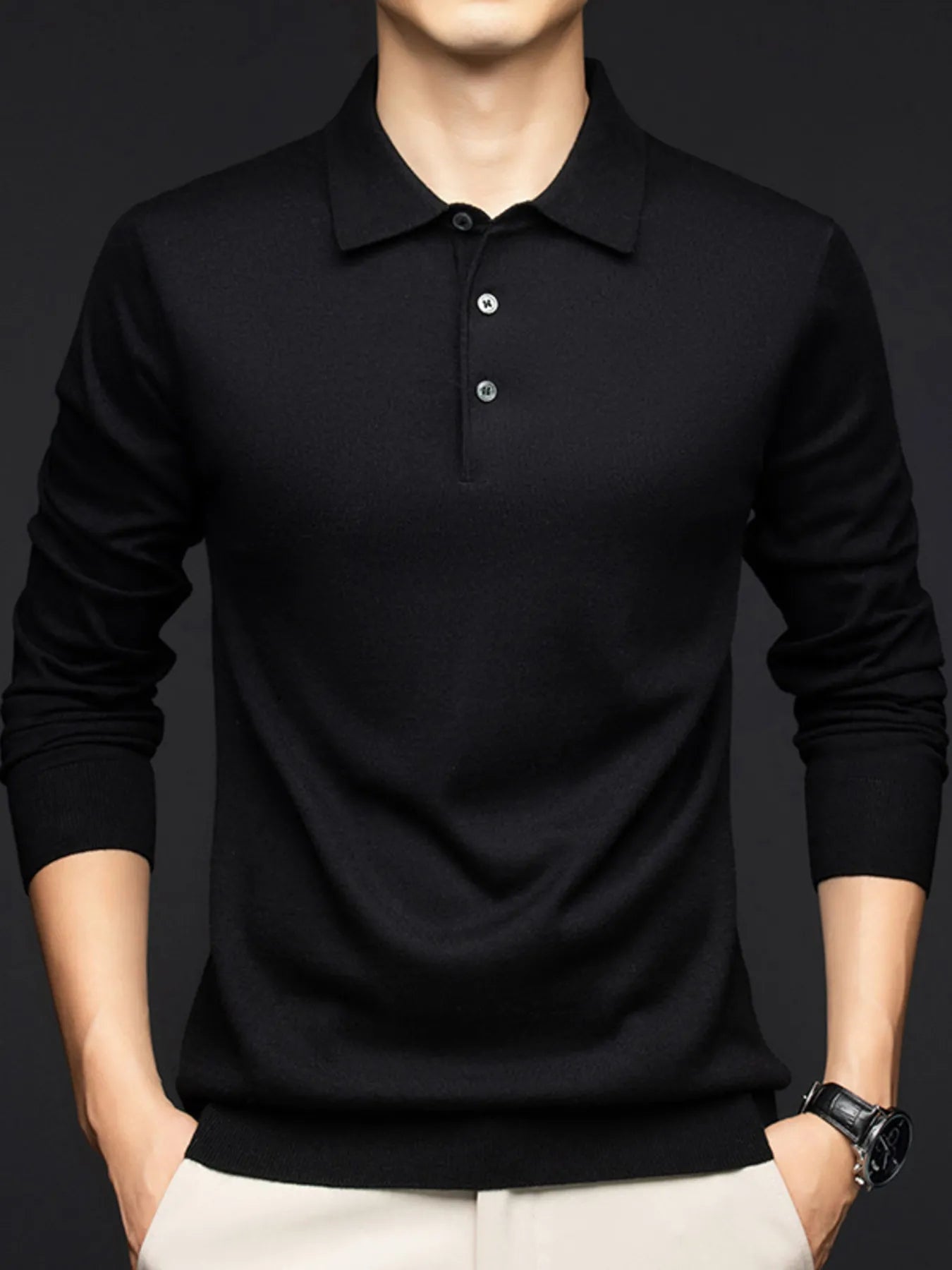 Men's Plus Size Collared Neck Long Sleeve Polo Shirt