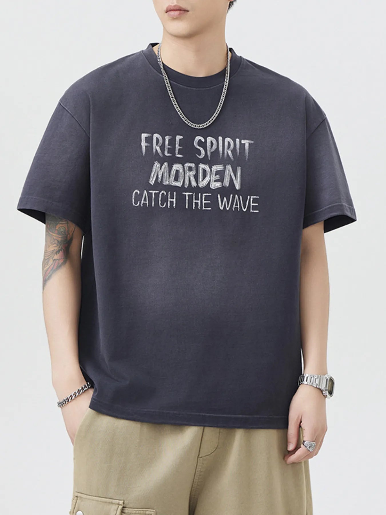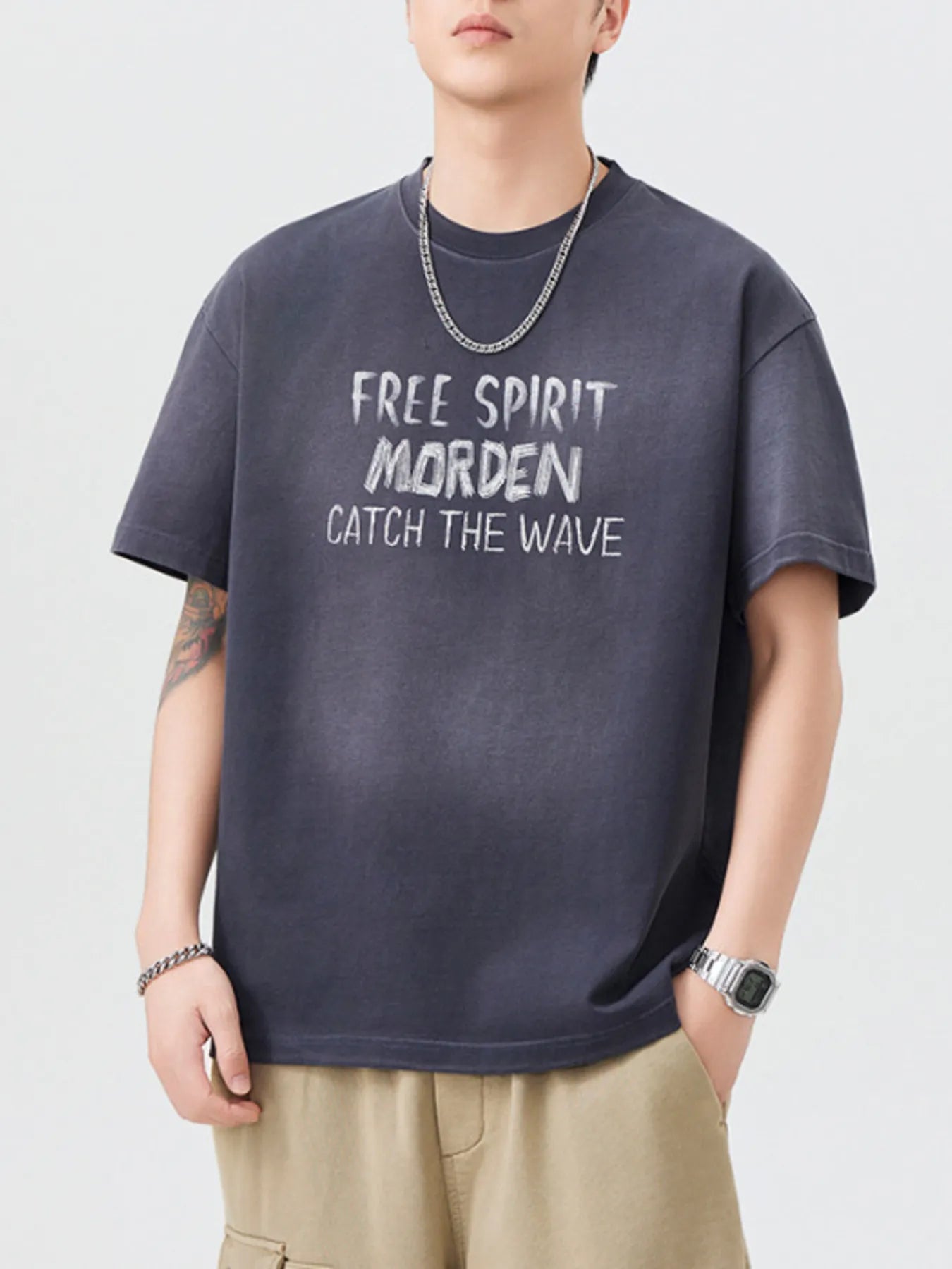 Men's Plus Size Letter Round Neck Short Sleeve T-Shirt